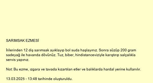 Not: Bu ezme, ızgara ve tavada kızartılan etler ve balıklarda hardal yerine kullanılır.