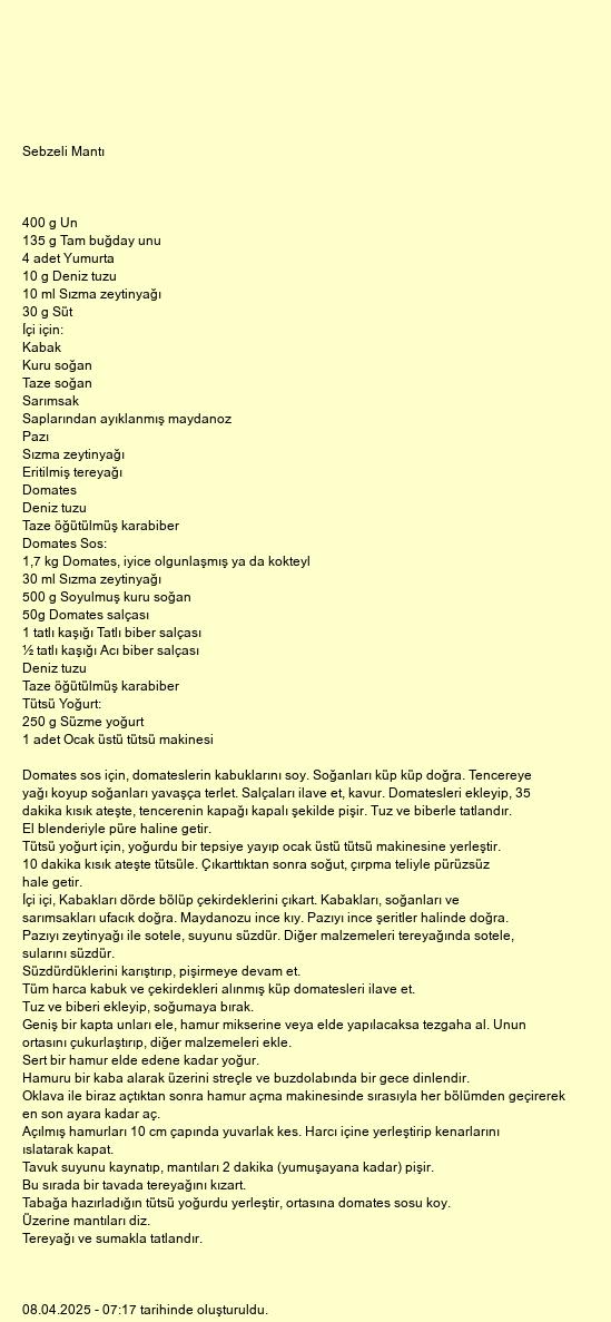 Sebzeli Mantı