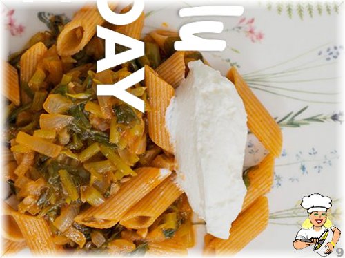 Semizotlu Tam Buğday Penneyi süzme yoğurt ile birlikte servis ediyoruz.