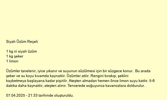 Üzümler tanelenir, iyice yıkanır ve suyunun süzülmesi için bir süzgece konur. Bu arada şeker ve su koyu kıvamda kaynatılır. Üzümler atılır. Rengini bırakıp, şeklini kaybetmeya başlayana kadar pişirilir. Ateşten almadan hemen önce limon suyu katılır. 5-6 dakika daha kaynatılır, ateşten alınır. Tencerede soğuyunca kavanozlara doldurulur.