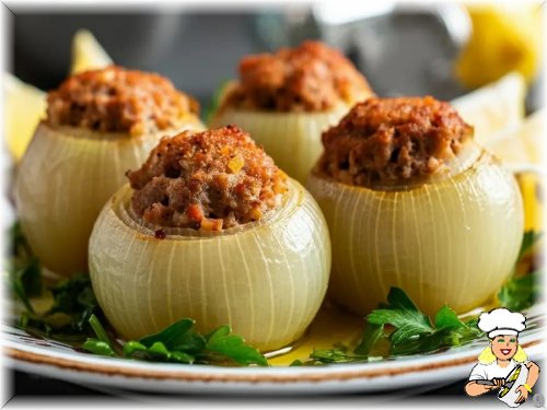 Soğan katlarının içine 1–1,5 çay kaşığı iç koyarak sarınız.