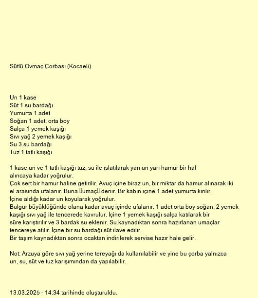 Sütlü Ovmaç Çorbası (Kocaeli)