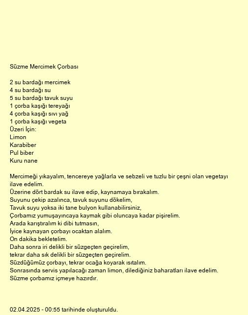 Süzme Mercimek Çorbası