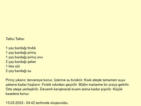 Pirinç yıkanır, tencereye konur, üzerine su bırakılır. Kısık ateşte tamamen suyu çekene kadar haşlanır. Fındık robottan geçirilir. Bütün malzeme bir araya getirilir. Orta ateşe yerleştirilir. Devamlı karıştırarak kıvam alana kadar pişirilir. Küçük kaselere konur.