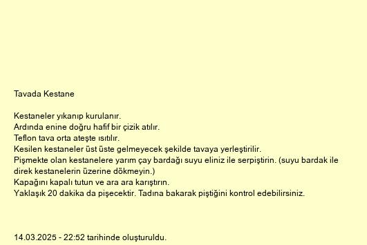 Pişmekte olan kestanelere yarım çay bardağı suyu eliniz ile serpiştirin. (suyu bardak ile direk kestanelerin üzerine dökmeyin.)