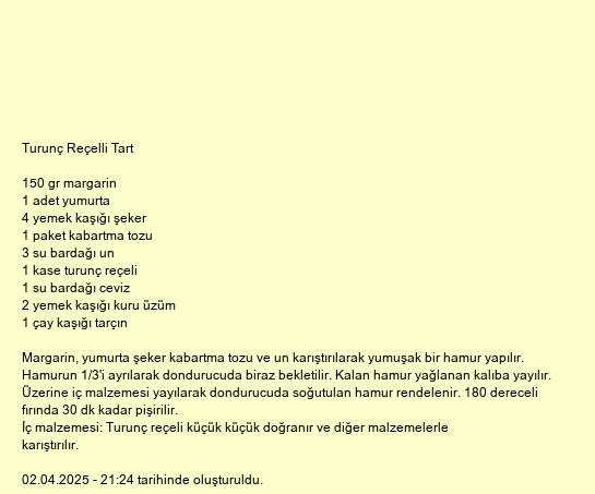 İç malzemesi: Turunç reçeli küçük küçük doğranır ve diğer malzemelerle karıştırılır.