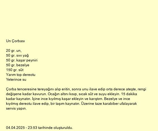Çorba tenceresine tereyağını alıp eritin, sonra unu ilave edip orta derece ateşte, rengi değişene kadar kavurun. Ocağın altını kısıp, sıcak süt ve suyu ekleyin. 15 dakika kadar kaynatın. İçine ince kıyılmış kaşar ekleyin ve karıştırn. Bezelye ve ince kıyılmış dereotu ilave edip, bir taşım kaynatın. Üzerine taze karabiber ufalayarak servis yapın.