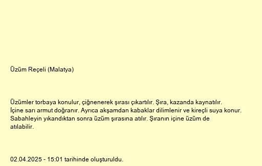 Üzümler torbaya konulur, çiğnenerek şırası çıkartılır. Şıra, kazanda kaynatılır. İçine sarı armut doğranır. Ayrıca akşamdan kabaklar dilimlenir ve kireçli suya konur. Sabahleyin yıkandıktan sonra üzüm şırasına atılır. Şıranın içine üzüm de atılabilir.
