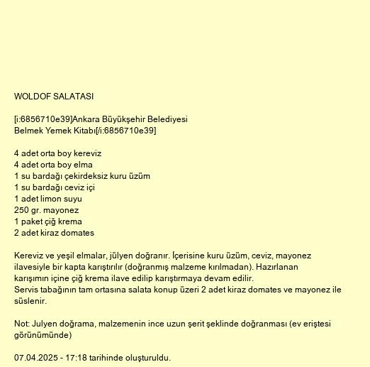 Not: Julyen doğrama, malzemenin ince uzun şerit şeklinde doğranması (ev eriştesi görünümünde)