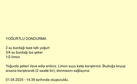 YOĞURTLU DONDURMA tarifi, Dondurmalar bölümüne ait bir tariftir.