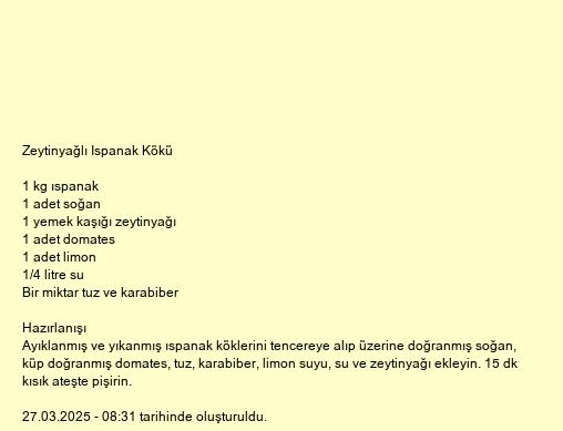 Ayıklanmış ve yıkanmış ıspanak köklerini tencereye alıp üzerine doğranmış soğan, küp doğranmış domates, tuz, karabiber, limon suyu, su ve zeytinyağı ekleyin. 15 dk kısık ateşte pişirin.